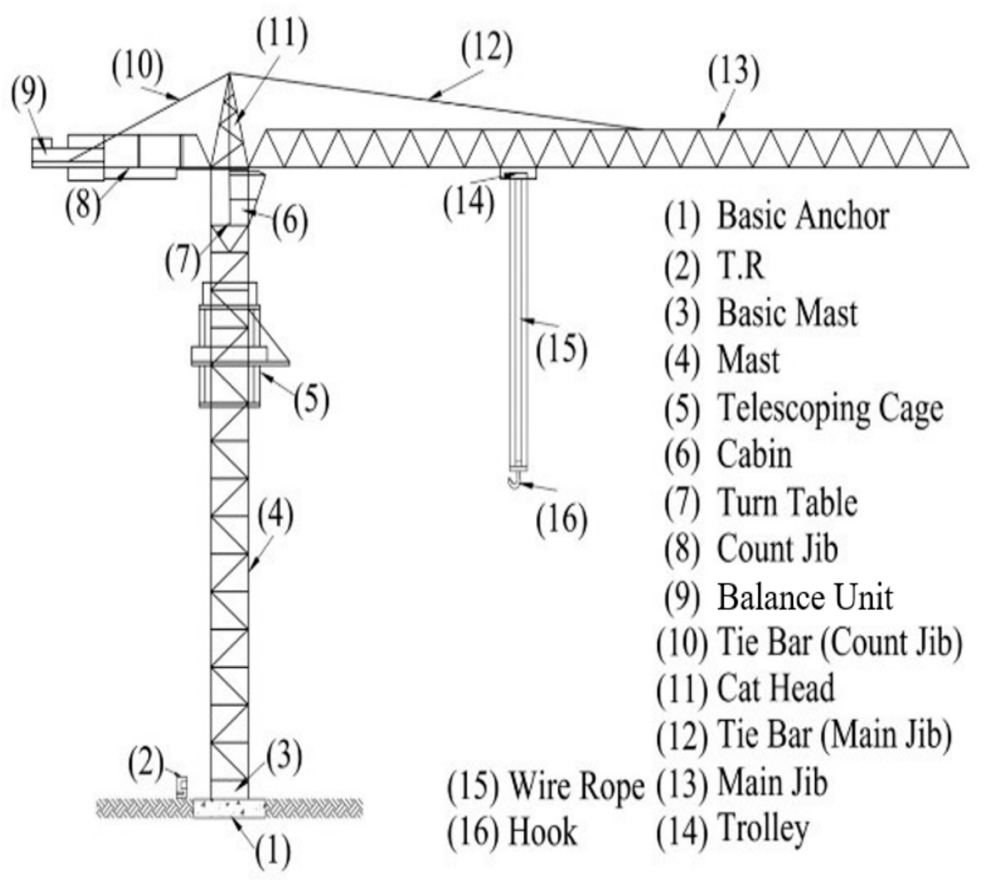 ۱. نقش قطعات تاورکرین در جرثقیل ساختمانی