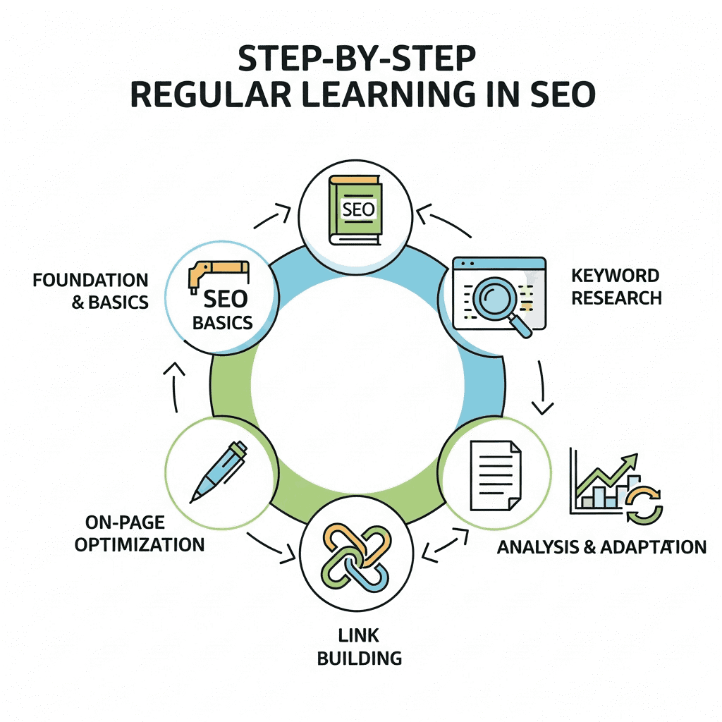 یکی از بزرگترین چالشهای مبتدیان در سئو، نداشتن مسیر یادگیری مشخص است. بدون یک برنامه آموزشی منسجم، افراد ممکن است زمان زیادی را صرف مطالعه مطالب پراکنده کنند و در نهایت نتایج مورد انتظار را به دست نیاورند. بسیاری از مبتدیان حتی پس از خواندن کتاب آموزش سئو یا مقالات آنلاین، احساس سردرگمی میکنند، چون نمیدانند کدام مهارت را باید ابتدا یاد بگیرند و چه ارتباطی بین بخشهای مختلف سئو وجود دارد.
